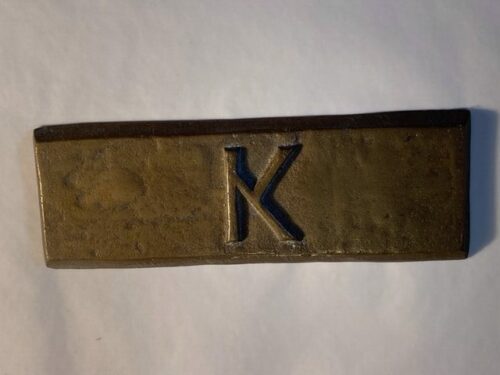 Below – Many thanks to Helen Kenneth for forwarding a photo of this ‘K’ stamp. Helen is James Kenneth’s granddaughter.