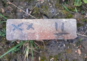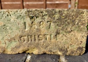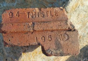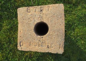Number like 84 68 should refer to the inner and outer diameters of the brick circle they form but with 9″ bricks and a difference of 16 that seems unlikely. Quick work with straight edges says these bricks form a circle with a diameter of about 60″ not including any bonding cement so 68″ with bonding cement is not impossible. Where does the 84 fit in? That’s 7′ so if not the outer diameter, is it the height/depth?